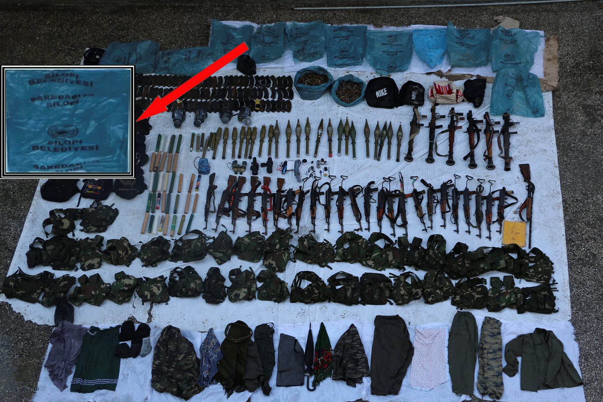 Bu arada ele geçirilen patlayıcılar ile mühimmatın bir kısmının Silopi Belediyesinden alınan poşetler içinde saklanması dikkati çekti.