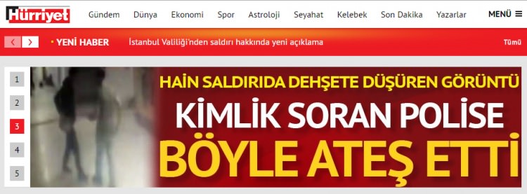 Daha önce şehit savcı Mehmet Selim Kiraz'ın teröristler tarafından başına silah dayanmasını servis eden Sözcü ve Hürriyet şimdi de Atatürk Havalimanı'ndaki canlı bombanın polisi vurma anını habercilik başarısıymış gibi servis etti.