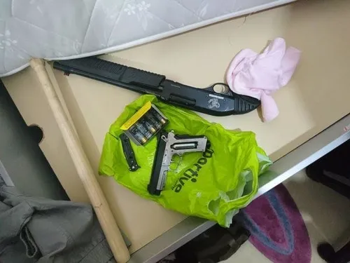 Adreste yapılan aramada olayda kullanılan pompalı tüfek ile 1 adet boncukatar tabanca elde edildi.