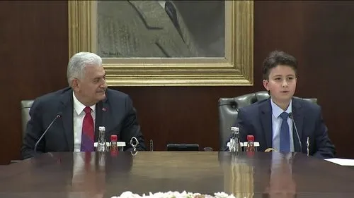 Başbakan Binali Yıldırım, Çankaya Köşkü'nde çocukları kabul etti.Yıldırım, koltuğunu 5. sınıf öğrencisi Yağış Keçe'ye devretti.