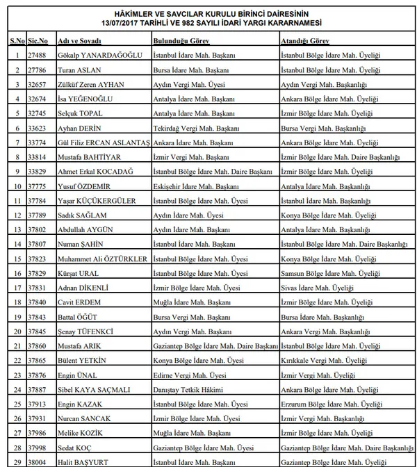"Ataması yapılan meslektaşlarımıza yeni görev yerlerinde başarılar diler, kararnamelerin meslektaşlarımızın ailelerine, yargı teşkilatına ve ülkemize hayırlı olmasını temenni ederiz."
