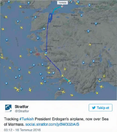 Stratfor, Cumhurbaşkanı Erdoğan'ın uçağının güzergahını Twitter'dan yayınlamıştı.