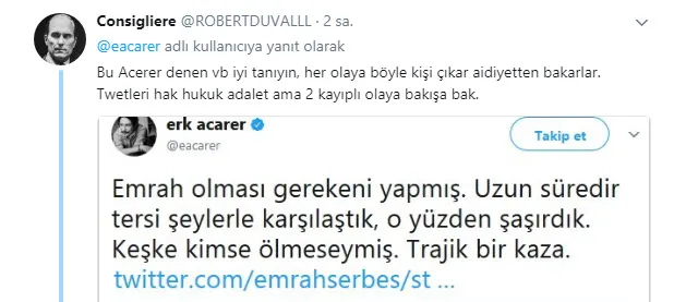 Serbes'in yaptığı itirafın ardından kazada hayatını kaybedenlerin ailesi Twitter'dan teşekkür ettiklerini yazan bir tivit paylaştı. Fakat daha sonra bu tivit silindi.