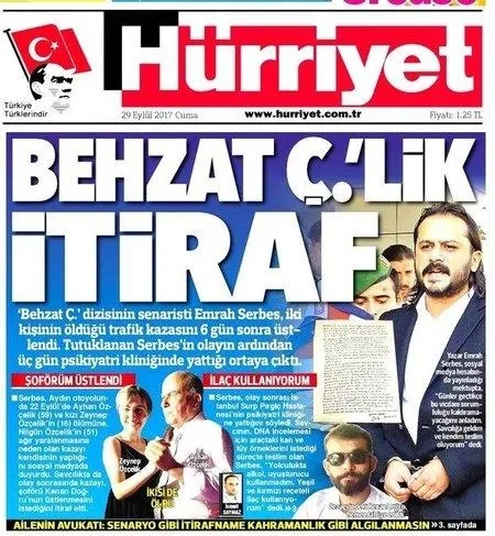 Hürriyet önceki gün savcılığın inceleme başlattığı gerçeği ortada dururken, "Behzat Ç'lik itiraf" başlığı atarak Emrah Serbes'in bu itirafı kendiliğinden yaptığı algısı oluşturmaya çalıştı. Hürriyet yazarı Ertuğrul Özkök'ün de köşesinde, Serbes'in itiraf mektubunu "samimi" bulduğunu yazması tepki çekti. Sosyal medyada Hürriyet'in baba ile kızının hayatına mal olan, annenin de yoğun bakımda yaşam mücadelesi verdiği bir kazaya neden olan Emrah Serbes'i kollamaya çalıştığı yorumları yapıldı.