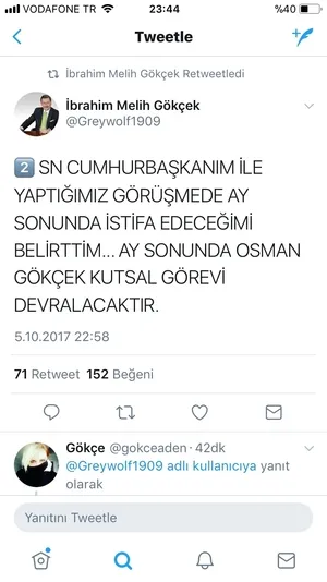 CNN Türk'te Hande Fırat'ın sunduğu ''Gece Görüşü'' programında Hürriyet yazarı Abdulkadir Selvi, Beştepe'de Cumhurbaşkanı Erdoğan ile görüşen Melih Gökçek'in adına açılmış sahte hesaptan atılan bir Tweet'i okudu.
