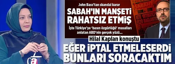 SABAH'ın FETÖ'cülerin ABD Konsolosluğu ile ilişkisini deşifre eden manşetinden sonra ABD Büyükelçisi John Bass'tan skandal bir karar geldi. Bass SABAH yazarı Hilal Kaplan'a yaptığı daveti gazetenin manşetinden dolayı iptal etti ve bunu son derece yakışıksız bir biçimde Kaplan'a bildirdi.