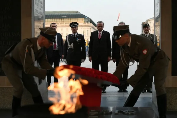 Cumhurbaşkanı Recep Tayyip Erdoğan, Polonya temasları kapsamında Meçhul Asker Anıtı'nı ziyaret ederek çelenk bıraktı.