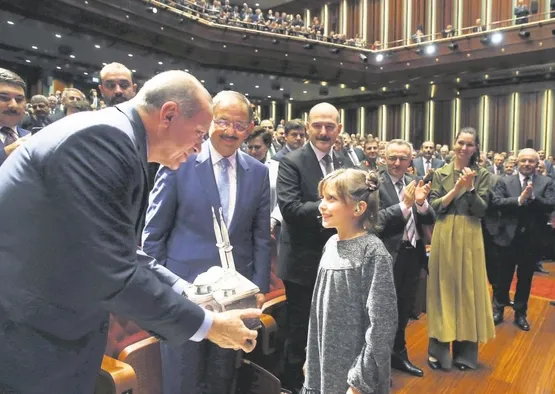 Toplantıda 9 yaşındaki Nazlı Kaya Kabuk isimli sahne gösterisini sundu. Kaya, gösterisinde kullandığı kuş evini, Erdoğan'ın yanına giderek kendisine hediye etti.