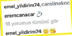 Müstakbel damadını instagram'da takip eden Caroline Koç, bu kareyi beğendi. Emel Yıldırım ise bu fotoğrafı beğenmekle kalmadı altına 'kalpli öpücük' emojisi de koydu.