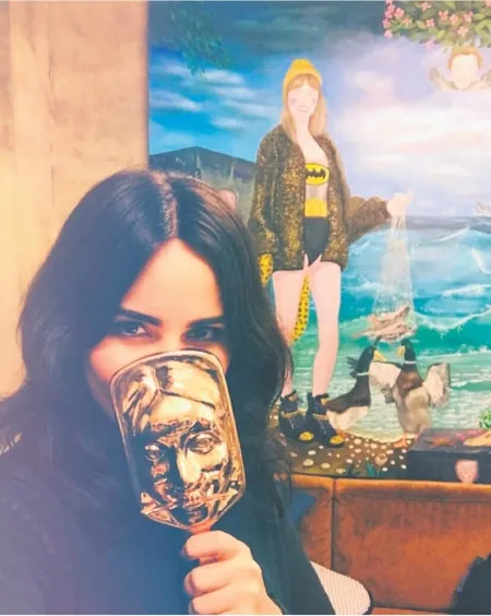 Zeynep Sever Demirel'in önünde bu pozu verdiği ve Ali Elmacı imzalı eserin fiyatı 60 bin TL.