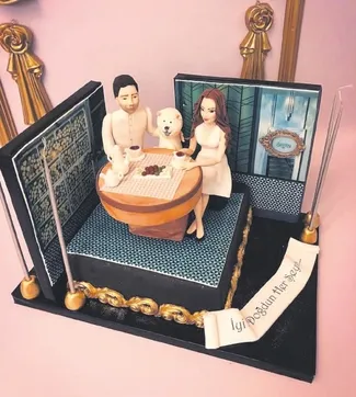 İkilinin yakın dostları pastaya hayran kaldı.