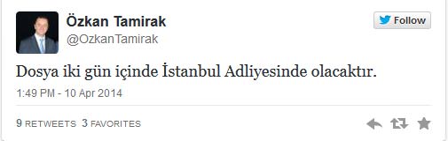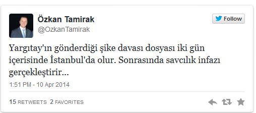 Haberi, Akşam gazetesi haber müdürü Özkan Tamirak twitter'dan duyurdu.