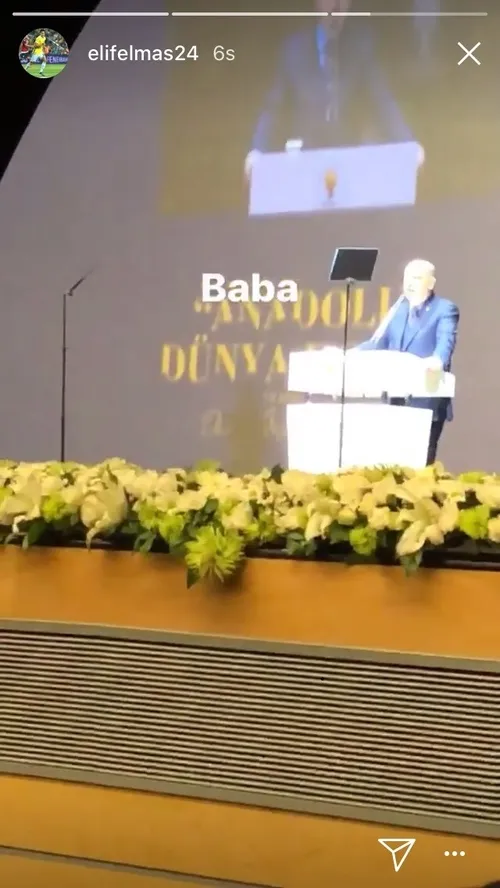 Eljif Elmas Cumhurbaşkanı Erdoğan'ın konuştuğu sırada instagram hesabından bir hikaye paylaşarak 'Baba' yazdı.