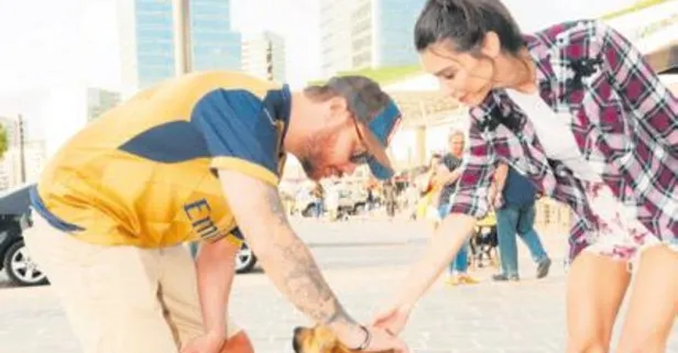 POPÇU Sinan Akçıl ile oyuncu eşi Burcu Kıratlı, önceki gün Vadistanbul'da objektife takıldı. İkili, araçlarını beklerken yanlarına gelen bir köpeği uzun süre sevdi.