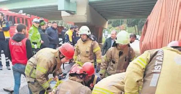 Rauf Orbay Caddesi'nde saat 18.45 sıralarında Mehmet Fettahoğlu'nun yönetimindeki 34 ER 260 plakalı TIR, Marmaray geçidine çarparak yanında bulunan 34 TY 3045 plakalı otomobilin üzerine devrildi.