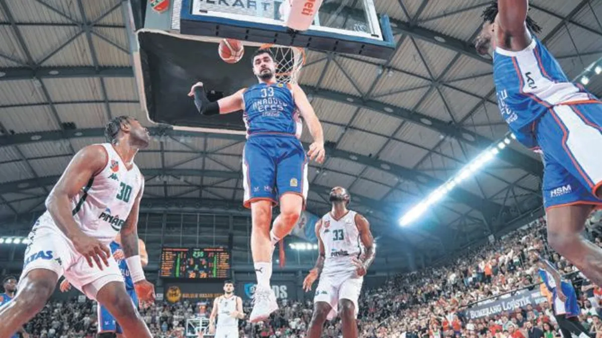 Türkiye Sigorta Erkekler Basketbol Ligi'nde Anadolu Efes, Pınar Karşıyaka'yı üçüncü maçta da mağlup ederek adını finale yazdı. İlk seti 24-20 önde tamamlayan Efes devreye de 48-42 üstün tamamladı. Üçüncü çeyrekte 72-67 önde geçen Lacivert-Beyazlılar, son bölümde de hata yapmadı ve maçı 97-90 kazandı. Efes'te Shane Larkin 28 sayı 6 asist, Karşıyaka'da McCollum 28 sayı 7 asistle mücadele etti.