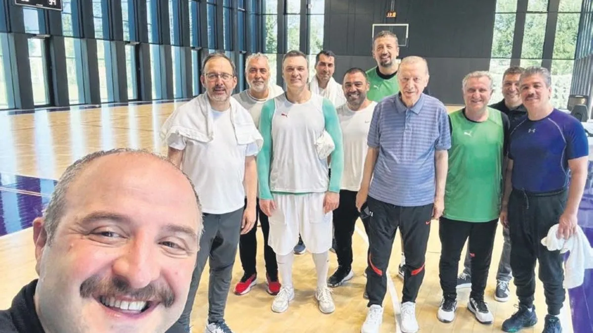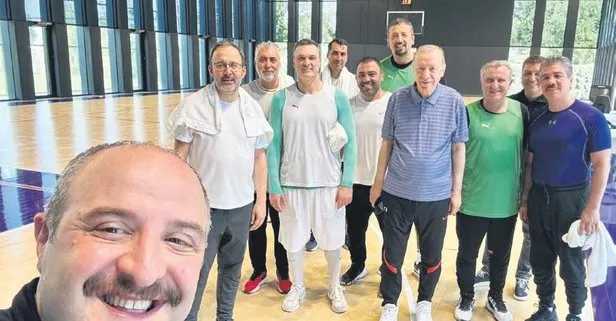 Başkan Recep Tayyip Erdoğan, KKTC dönüşü milletvekilleriyle Cumhurbaşkanlığı Külliyesi'nde basketbol oynadı. Bilgi ve Teknoloji Komisyonu Başkanı Mustafa Varank, maç sonrası toplu bir kare paylaştı.