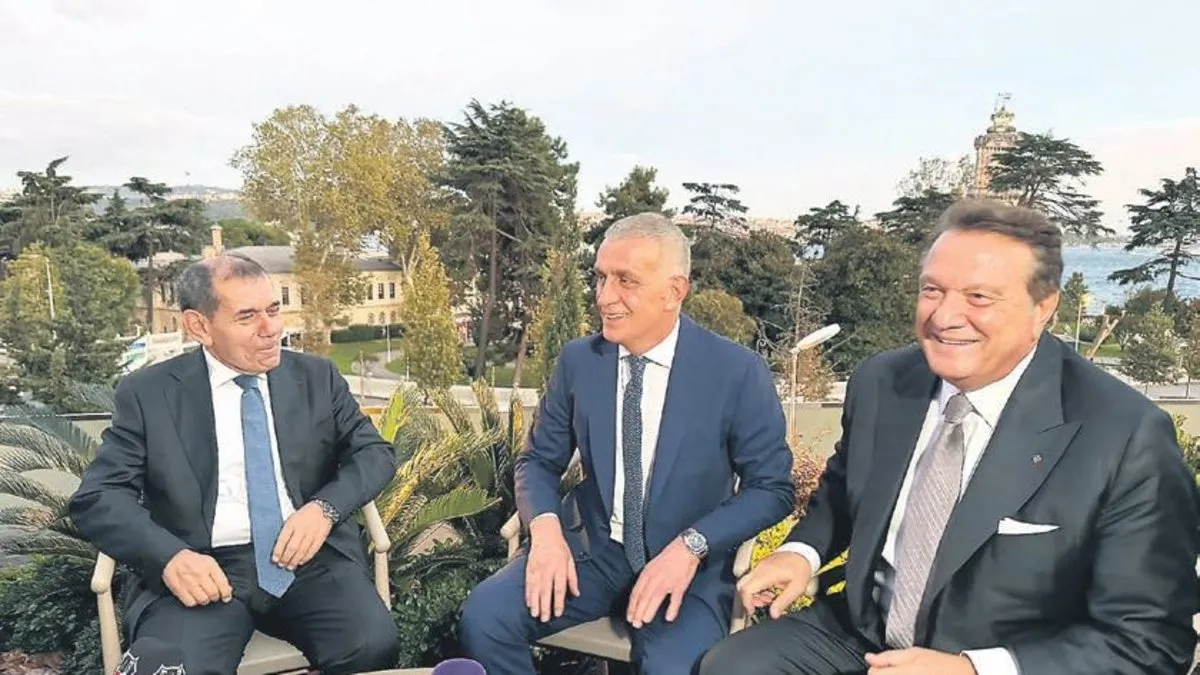 TFF Başkanı İbrahim Hacıosmanoğlu, Beşiktaş Başkanı Hasan Arat ve G.Saray Başkanı Dursun Özbek, Tüpraş Stadı'nda White Paper restoranın açılışında bir araya geldi.