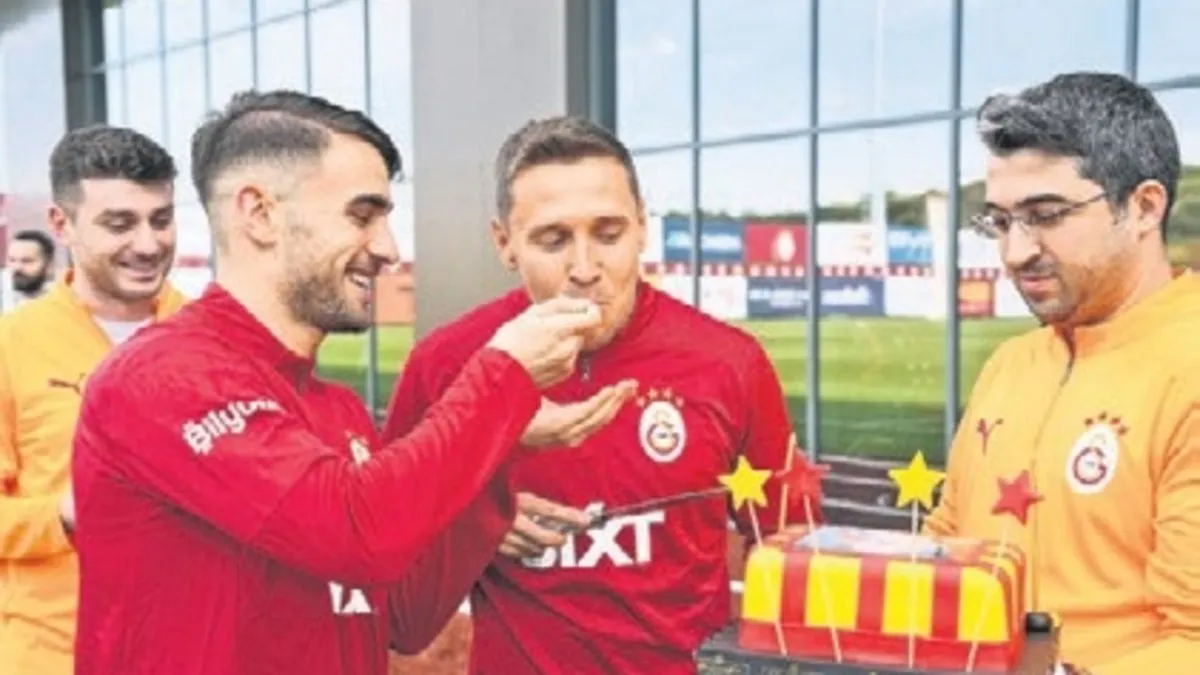 Galatasaray'ın dün Kemerburgaz'da gerçekleştirdiği idman öncesi Polonyalı futbolcu Frankowski'nin doğum günü kutlandı. Pastayı kesen ve tadım yapan Polonyalı futbolcu ve takım arkadaşlarının neşeli tavırları dikkat çekti.