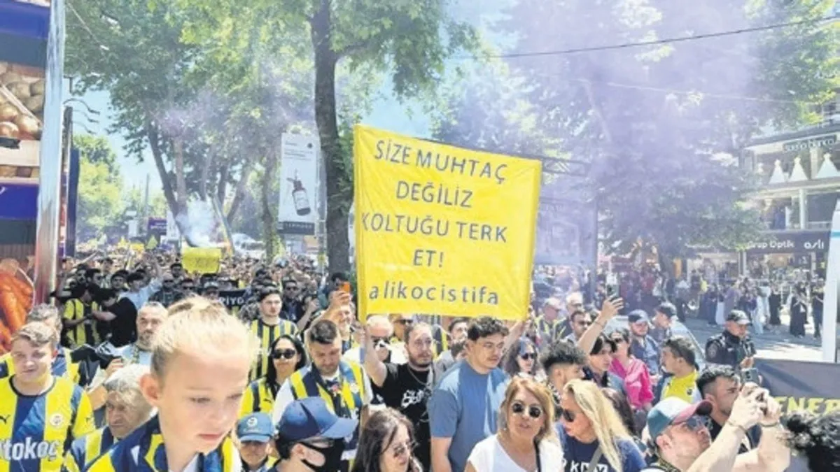 Yaklaşık 5 bin kişinin katıldığı yürüyüşte, yönetim aleyhine sloganlar atılarak, Başkan Ali Koç ve yönetimi istifaya davet edildi. Fenerbahçe'nin eski yöneticilerinden ve başkan adaylığını daha önce açıklamış olan Hakan Bilal Kutlualp da yürüyüşte yer aldı.