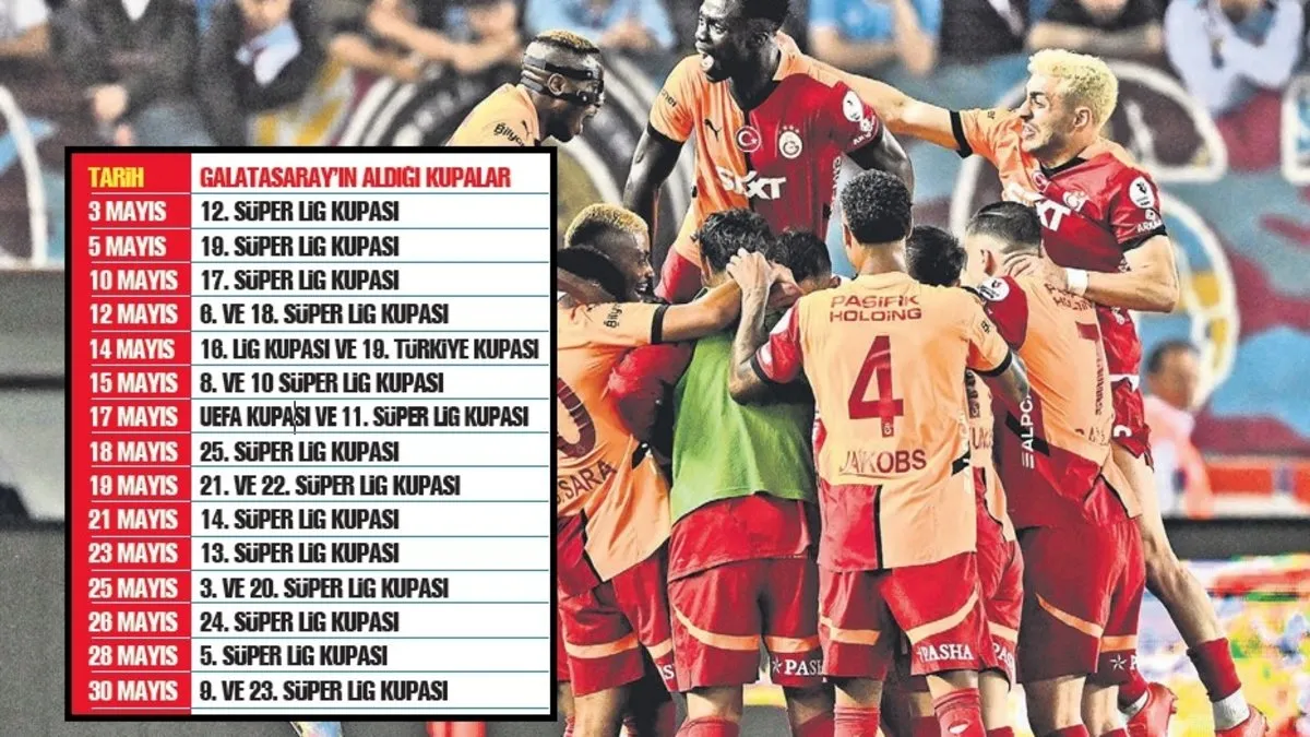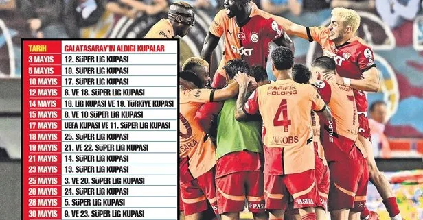Mayıslar bizimdir mottosu ile rakiplerine karşı büyük üstünlük kuran Galatasaray'ın yılın 5. ayında elde ettiği başarılar dikkat çekiyor. Sarı-Kırmızılılar, Mayıs ayında tam 21 zafer kazandı. Son olarak 18 Mayıs'ta 25. Süper Lig zaferini yaşayan Galatasaray, 3 Mayıs'ta 12. Süper Lig Kupası, 5 Mayıs'ta 19. Süper Lig Kupası'nın sahibi oldu.