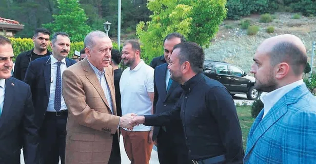 Camii avlusunda vatandaşlarla selamlaşan Başkan Erdoğan, Trabzonspor Kulübü Başkanı Ertuğrul Doğan'la bayramlaştı ve camiaya tebriklerini iletti.