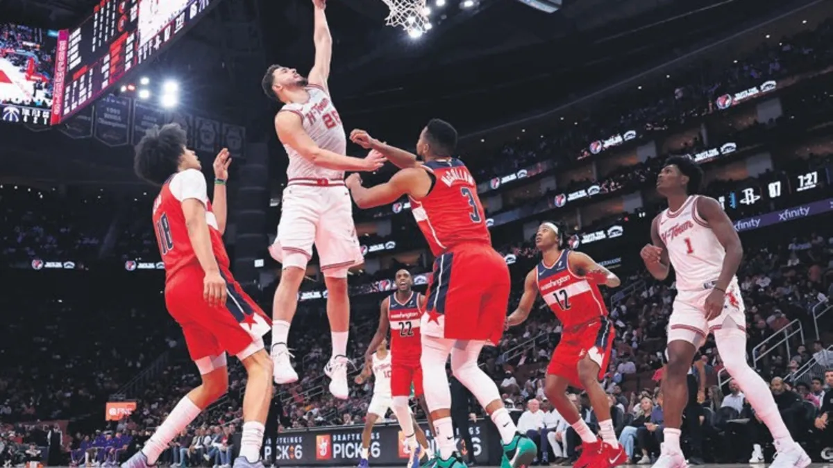 NBA'DE normal sezon heyecanı 12 karşılaşmayla devam etti. Alperen Şengün'ün oynadığı Houston Rockets, konuk ettiği Washington Wizards'ı 135-112'lik skorla mağlup ederek, 7. galibiyetini elde etti. Houston'da Alperen Şengün, 27 dakika kaldığı parkede 16 sayı, 13 ribaund ve 6 asistle doubledouble yaptı... Kevin Durant 25 sayı ve Reed Sheppard da 21 sayıyla mücadele etti.