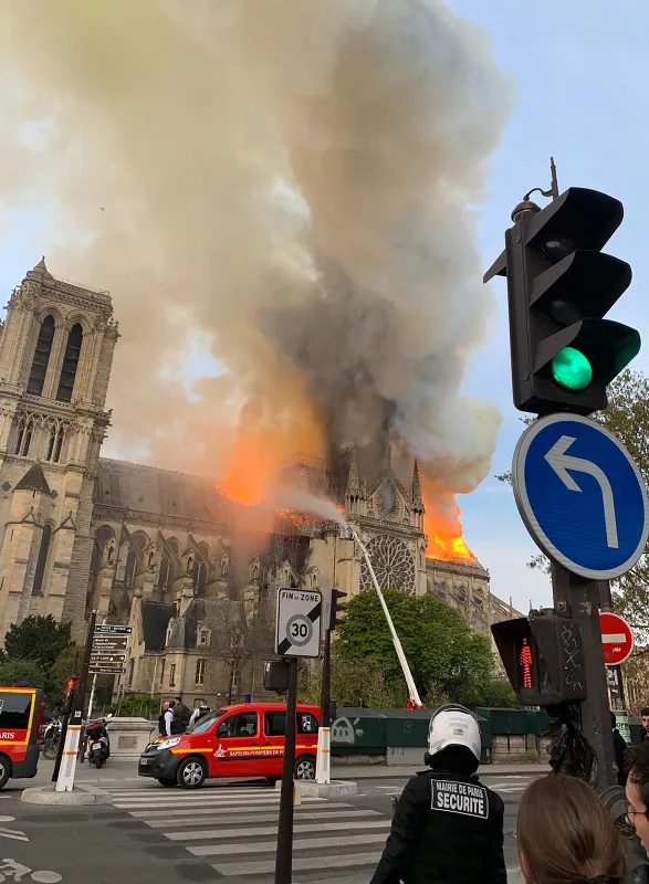 Notre Dame Katedrali Sözcüsü Andre Finot, "Her şey yanıyor, 19. yüzyıldan, 13. yüzyıldan kalan her yer yanıyor, hiçbir şey kalmayacak." açıklamasını yaptı. Paris İtfaiyesi, Notre Dame Katedrali'ndeki yangının söndürülüp söndürülemeyeceğinden emin olamadıklarını duyurdu.