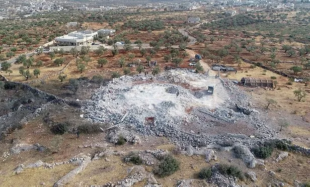 Anadolu Ajansı İdlib'de ABD'nin terör örgütü DEAŞ'ın elebaşı Ebubekir el-Bağdadi'yi etkisiz hale getirdiği olay yerini drone ile çekti. Olay yerinde 3 evin yerle bir olduğu ve etrafındaki çadırların hasar gördüğü görüntülere yansıdı. Zeytin ağaçlarının arasındaki olay yerinde, bombardımanın etkisiyle çukurların oluştuğu da gözlendi.