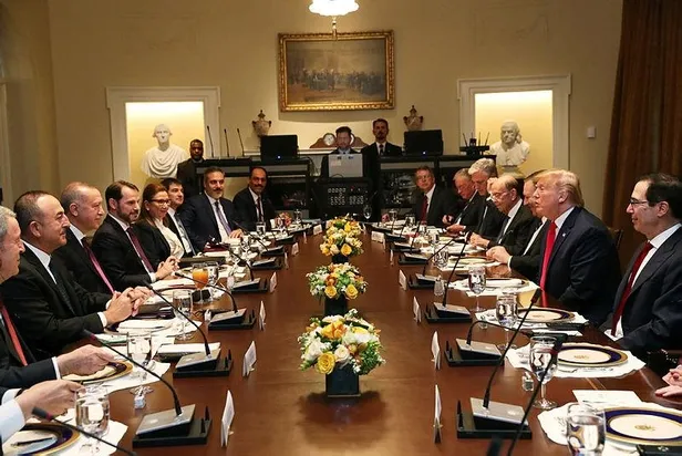 Görüşmenin ardından heyetler arası çalışma yemeğine geçen Erdoğan ve Trump, daha sonra ortak basın toplantısı düzenleyecek.