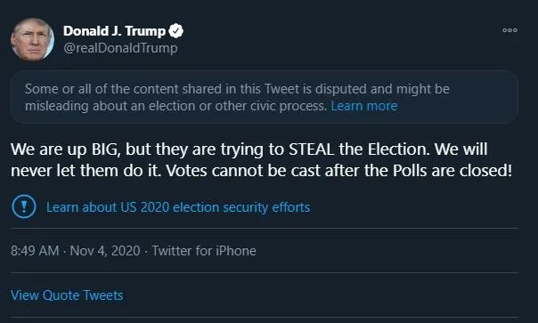 — Donald J. Trump (@realDonaldTrump) November 4, 2020