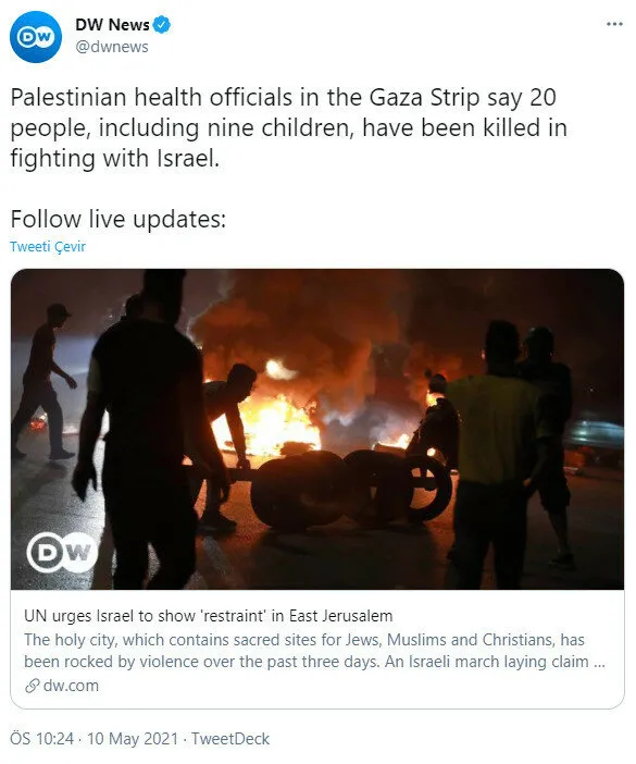 Alman medya kuruluşu Deutsche Welle, İsrail'in hedef göstermeksizin gerçekleştirdiği saldırılarda ölen Filistinli çocukları, 'çatışmada hayatlarını kaybettiler' olarak servis ederek katilleri aklamaya çalıştı.