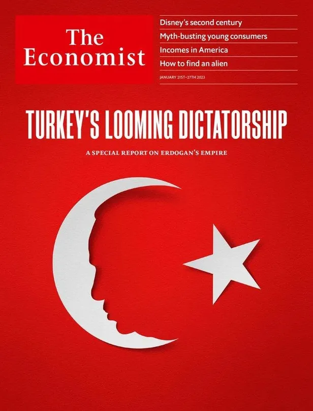 Başkan Erdoğan'ın seçim tarihi için 14 Mayıs'ı işaret etmesinin ardından Türkiye'deki seçimlere müdahale etmek için birbirleriyle yarışan dış basına ABD merkezli WSJ, Washington Post, Bloomberg ve İngiltere merkezli Reuters'ın ardından Londra merkezli The Economist dergisi de katıldı. Türk bayrağı üzerinde Başkan Erdoğan'ın gölgesinin yer aldığı skandal görseli manşetine taşıyan gazete haberinin başlığında "Türkiye diktatörlüğün eşiğinde olabilir" ifadeleriyle Başkan Erdoğan'ı, Türk demokrasisini ve yargıyı hedef aldı. FETÖ'den dini yapı olarak bahsedilen haberde terör örgütü PKK'nın siyasi ayağı HDP'den ise Kürtlerin partisi şeklinde söz edilerek büyük bir rezalete imza atıldı. The Economist 2017 yılında Cumhurbaşkanlığı sistemine geçiş için yapılan anayasa referandumu sürecinde de benzer bir skandala imza atmıştı. Öte yandan derginin haberine sosyal medyadan tepki yağdı.