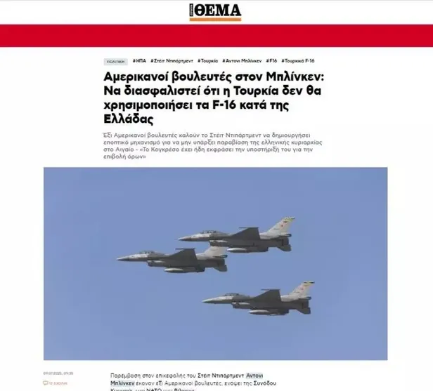 Bu bağlamda Yunan basınında çıkan son haberde ise ABD'li vekillerin Türkiye'ye yönelik skandal mektubu yer aldı. Proto Thema'da yer alan habere göre söz konusu vekiller, Türkiye'nin F-16'ları kullanmasını gözetim mekanizması altında tutmak istiyor.