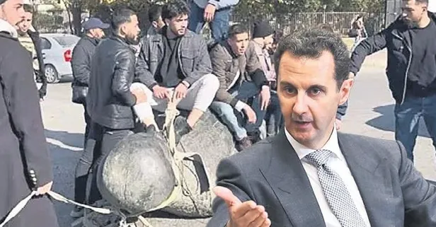 Hafız Esad'ın heykeli Emevi Meydanı'nda sürüklendi. Suriye'nin başkenti Şam'da eski Devlet Başkanı ve Beşar Esad'ın babası Hafız Esad'ın heykeli, muhalifler tarafından yıkılırken, Emevi meydanında sürüklendi. Suriye'de halkın Beşar Esad rejimine olan tepkisi her geçen gün daha da artarak devam ediyor. Suriye'de halk, Esad'ın uzun süren baskılarının ve zulmünün neden olduğu izleri silmeye çalışıyor. Başta Şam olmak üzere birçok kentte Beşar Esad ve eski Devlet Başkanı ve Beşar Esad'ın babası Hafız Esad'ın heykelleri, posterleri ve fotoğrafları yakılıp yıkılıyor.