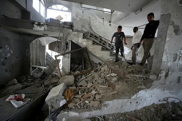 Cami kullanılmaz durumda ve büyük bir tahribat söz konusu. İsrail buranın komuta merkezi olduğu yönünde çelişkili açıklamalara yapıyor. Gazze'deki benzer görüntüler biri de bu noktada yaşandı. İbadethaneler, yaşam yerleri İsrail tarafından teker teker hedef alınıyor. Camiden geriye kalanlar; yerde seccadeler ve Kur'an-ı Kerimler var. Biz yerden kaldırdık ve yukarı da bir yere bıraktık. Burada çok büyük tahribat var. Yıllardır bu bölge İsrail'in işgali altında Buradakiler büyük bir zulüm görüyorlar. Buraya yakın bir yerde Yahudi yerleşim merkezi var.