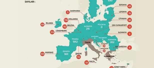 Fransa'yı 726 sığınmacıyla Hollanda, 690 sığınmacıyla Finlandiya, 555 sığınmacıyla Portekiz, 363 sığınmacıyla da İspanya izledi.