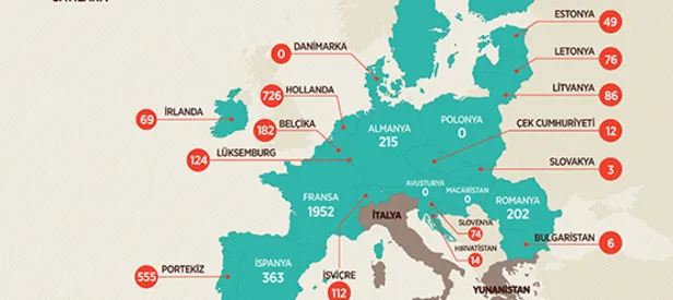 Fransa'yı 726 sığınmacıyla Hollanda, 690 sığınmacıyla Finlandiya, 555 sığınmacıyla Portekiz, 363 sığınmacıyla da İspanya izledi.