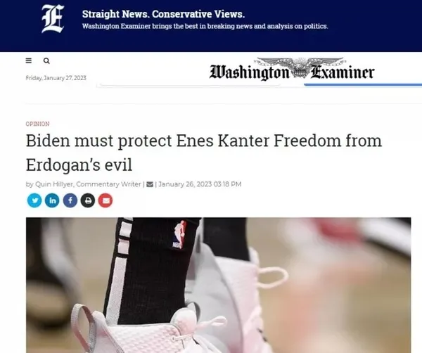 ABD'de yayın yapan haftalık dergi Washington Examiner internet sayfasında yer alan 'Biden, Enes Kanter'i Erdoğan'ın şerrinden korumalı' başlıklı haberi ile Biden'a skandal bir çağrıda bulundu.
