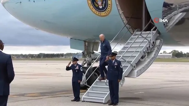 Başkanlık uçağı Air Force One ile Michigan'a gelen Başkan Biden, uçağın merdiveninden indiği sırada ayağının kayması sonucu az daha düşüyordu.
