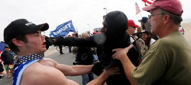 ABD’nin California eyaletindeki Huntington Plajı’nda Trump destekçileri ile karşıtları yumruk yumruğa birbirine girdi.