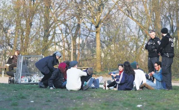 Almanya'da Coronavirüs tedbirleri kapsamında ikiden fazla kişinin bir araya gelmesi yasaklandı. Bir grup genç yasağı umursamadı. Durumu fark eden Alman polisi ceza uyguladı.