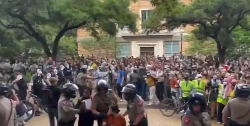 Katil İsrail'in Gazze operasyonunu ve Filistinli sivillere yönelik eylemlerini protesto eden 200 kadar öğrenci, öğlen saatlerinde Teksas Üniversitesi Austin yerleşkesinde toplanmaya başladı. Polis ilk aşamada, grubu yönlendirdiğini iddia ettiği 17 kişiyi gözaltına aldı. Bu sırada atlı birliklerin de dahil olduğu güvenlik güçleri ile öğrenciler arasında arbede yaşandı.