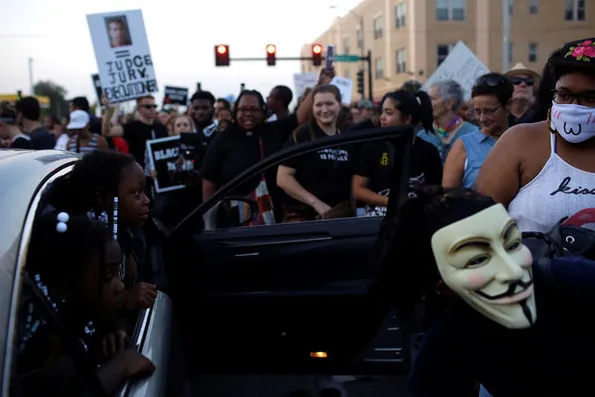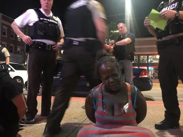 Dünkü gösteride St. Louis'in konserler ve gece hayatıyla tanınan banliyösü Delmar Loop'da toplanan ve siyahilerin haklarını savunan sloganlar atan göstericiler polisin "dağılın" çağrısına uymadı. Bölgeye zırhlı araçlarla özel giysili yüzlerce polisin sevk edilmesi üzerine bir sokağa sığınan göstericiler, camları kırarak polisle çatışmaya girdi. Polisin müdahalesi sırasında bazı göstericiler gözaltına alındı, göz yaşartıcı gaz fişeği isabet eden bir kişi ise yaralandı.