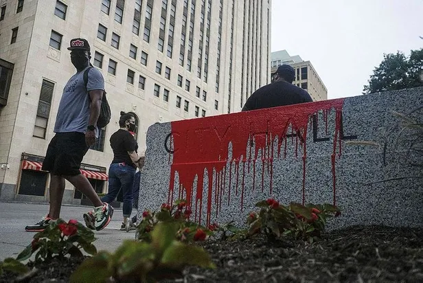 En son Floyd gösterileri kapsamında da şehir meydanındaki Kolomb heykelinin başı kesilerek büstünün yanına bırakılmıştı.
