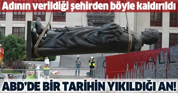 ABD'de tarihi görüntüler: Kristof Kolomb'un heykeli isminin verildiği şehirden kaldırıldı