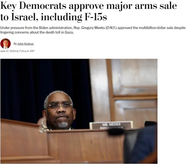 Temsilciler Meclisi ve Senato'daki iki kilit Demokrat, değeri 18 milyar dolardan fazla olan 50 F-15 savaş uçağı da dahil olmak üzere İsrail'e büyük bir silah satışına imza attı.