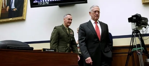 Mattis, ABD Genelkurmay Başkanı Orgeneral Joseph Dunford ile Temsilciler Meclisi Silahlı Hizmetler Komitesinde 2018 mali yılı savunma bütçesi hakkında ifade verdi.