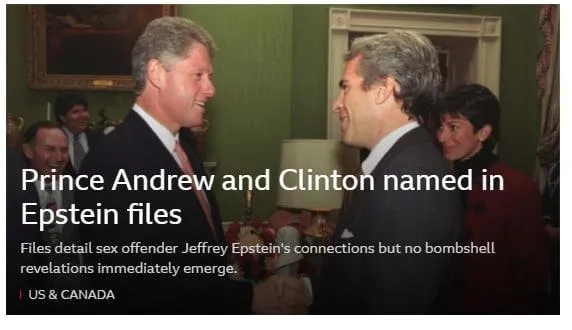 İngiliz kamu yayıncısı BBC, haberi "Jeffrey Epstein: Prens Andrew ve Bill Clinton'ın adı dava dosyalarında" başlığını kullanarak okuyucularıyla paylaşırken Prens Andrew dışındaki ünlü isimlere ilişkin iddialara da yer verdi.