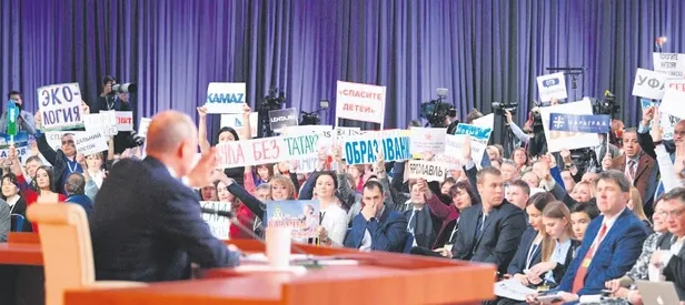 Vladimir Putin, geleneksel yıl sonu basın toplantısında ilginç cevaplar verdi. Putin, elinde 'Bay bay Putin' yazan birinin sorusunu almak istedi. İlk başta anlaşıldığının aksine 'Bay Bay Putin' yazısının Tatarcada 'Baba Putin' olarak telaffuz edildiğini ve bunun 'Büyük baba Putin' anlamına geldiğini söyleyen gazeteci, hem Putin hem de salondakilerin gülümsemesine neden oldu. Kuzey Kore krizinde ABD'nin Pyongyang yönetimini kışkırttığını savunan Putin, tüm taraflardan sakin olmalarını istedi. Rus lider, krizin çözümünde Moskova ve Washington birlikte çalışmasını umduğunu söyledi. Putin, "Kuzey Kore'ye gerçekleşecek bir saldırının yıkıcı sonuçları olabilir, bu ülkeden fırlatılacak bir füze feci sonuçlara yol açabilir" diye konuştu. Putin, ABD'ye bir eleştiride daha bulundu: Suriye'de terörist gruplar yenilgiye uğratıldı. Sahadaki askeri birimlerimiz sayesinde güvenlikle ilgili sorunlar giderildi. Bazı teröristlerin Irak'a kaçtığını görüyoruz. ABD'nin bunları görmezden geldiğini de biliyoruz